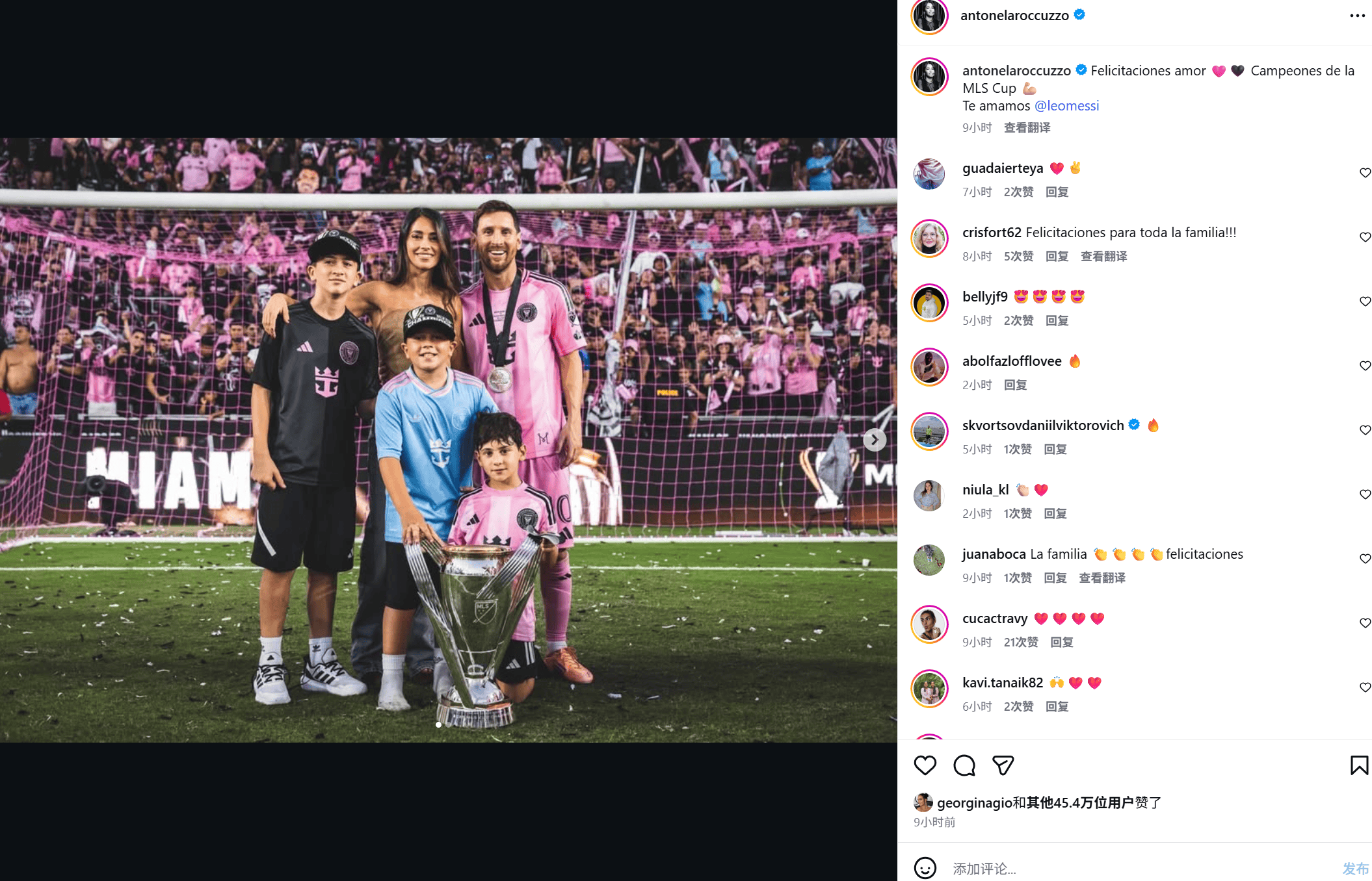 賽后,東內(nèi)邁阿密國(guó)際球星梅西的家人獎(jiǎng)杯妻子安東內(nèi)拉更新了社交媒體,曬出了一家人在球場(chǎng)中和冠軍獎(jiǎng)杯合影的同美照片。同時(shí),職聯(lián)安東內(nèi)拉的合照社媒配文這樣寫道:“恭喜親愛(ài)的,你是恭喜美職聯(lián)冠軍得主。我們愛(ài)你@梅西!親愛(ài)”