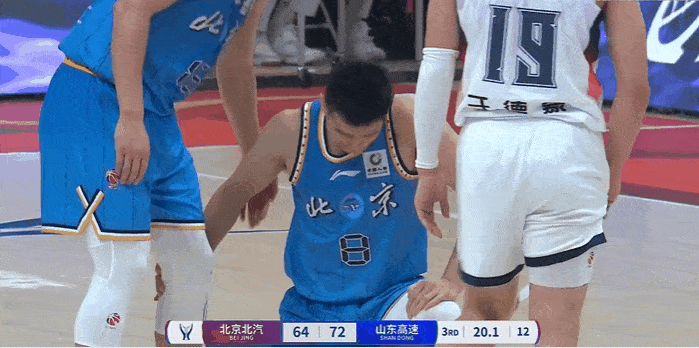第三節(jié)比賽,痛苦方碩爭(zhēng)搶籃球時(shí)與對(duì)手發(fā)生身體碰撞,久久隨后痛苦倒地久久不起。板方不起