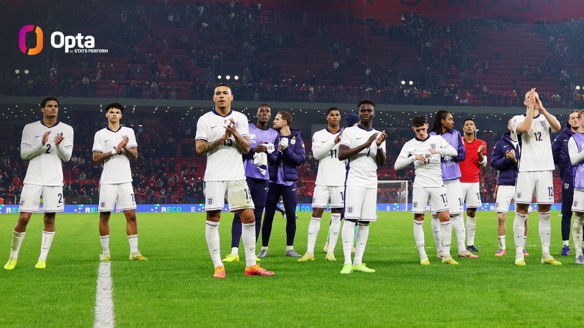 虎撲11月16日訊 根據(jù)數(shù)據(jù)網(wǎng)站Opta統(tǒng)計(jì),本輪客場(chǎng)2-0戰(zhàn)勝阿爾巴尼亞之后,預(yù)賽英格蘭成為歷史上第二支在世界杯預(yù)選賽中全勝且零失球的全勝球英歐洲球隊(duì),上一支是格蘭1954年世界杯預(yù)選賽的南斯拉夫。