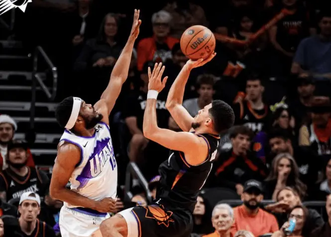 本場比賽,太陽球員德文-布克出戰(zhàn)38分鐘,23投13中,其中三分球9投6中,罰球5投4中,得到36分5籃板9助攻1封蓋。