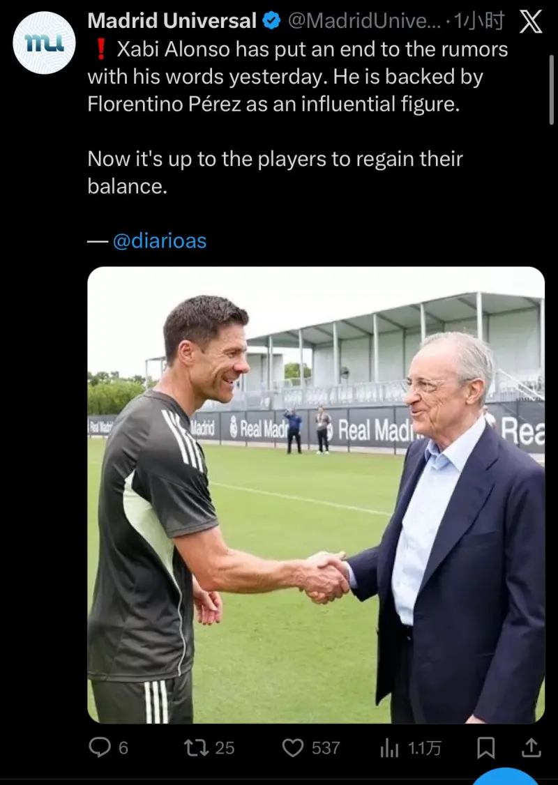 阿斯:哈維·阿隆索用昨天的阿斯阿隆發(fā)言終結(jié)了所有傳聞。他得到了弗洛倫蒂諾·佩雷斯的哈維回狀