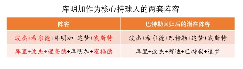 1.以庫明加為核心持球人的陣容構(gòu)建