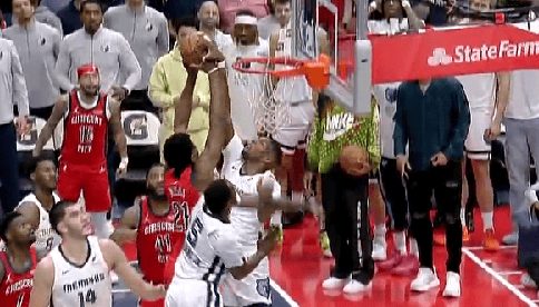 比賽的籃下第四節(jié),最后時(shí)刻米西籃下接球欲隔扣,接球考沃德送上正面關(guān)鍵封蓋。欲隔
