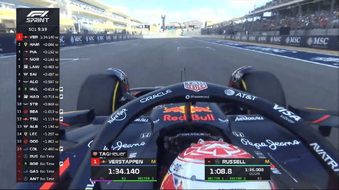 來源:微博虎撲10月18日訊 在剛剛結(jié)束的F1美國站沖刺排位賽中,維斯塔潘拿下桿位,諾里斯P2皮亞斯特里P3,霍肯伯格發(fā)揮出色拿下第四,拉塞爾排名第五,排名6-10位的分別是阿隆索、塞恩斯、漢密爾頓、阿爾本、勒克萊爾。