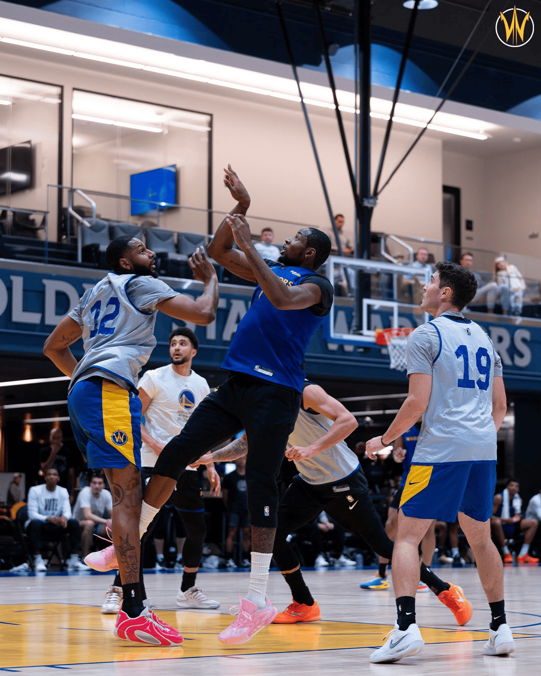 虎撲11月27日訊 勇士官方曬照:庫明加、梅爾頓、桑托斯和圣克魯茲勇士一起完成訓練。