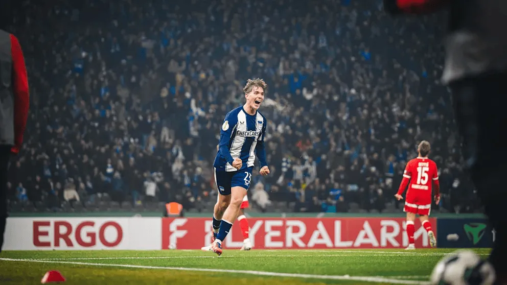 虎撲12月03日訊 全場最佳球員、柏林赫塔最年輕的進球者(此前是伊布拉欣·馬扎)、德國杯最年輕的進球者(此前是身穿多特蒙德球衣的裘德·貝林厄姆)——柏林赫塔的天才少年肯尼特·艾?;舳鳎ㄖ芏隄M16歲4個月零9天)正在不斷打破一項又一項紀錄。