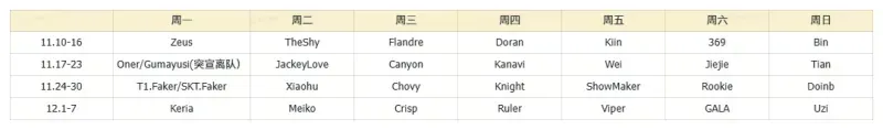 1. 四周每日一期,評選一個(gè)知名選手的招牌英雄,候選池為其生涯使用次數(shù)較多,或令人印象深刻的英雄。