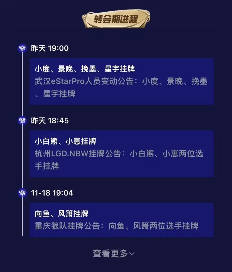 在這里,各戰(zhàn)隊、選手官宣變動都可以一網(wǎng)打盡,具體如下: