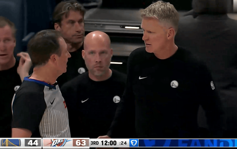值得一提的是,勇士中場休息時從更衣室回來時遲到,被裁判判罰技術犯規(guī)。