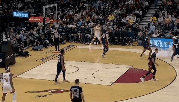 比賽的體前第一節(jié),阿門(mén)體前變向過(guò)掉莫布利,過(guò)掉加速?zèng)_框雙手暴扣得分。莫布