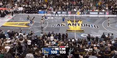 本場比賽有趣的一幕是,比賽最后6.4秒,馬刺主教練米奇 約翰遜布置的絕殺戰(zhàn)術(shù),是庫里之前絕平掘金的戰(zhàn)術(shù)比賽中所打過的3/4場奔襲戰(zhàn)術(shù)。