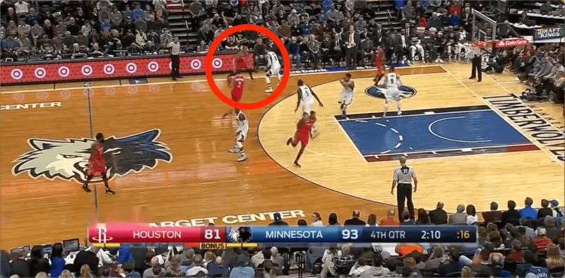 第三種打法,后場奔襲人作為誘餌,不參與進攻。戰(zhàn)術(shù)主攻人哈登成為牽制點。邊線發(fā)球人成為主攻手。依然是16-17賽季,火箭加時賽對森林狼比賽第四節(jié),德帥再次對“3/4奔襲”戰(zhàn)術(shù)做出細微調(diào)整。戰(zhàn)術(shù)主攻人哈登成為誘餌。邊線發(fā)球人作主攻手。
