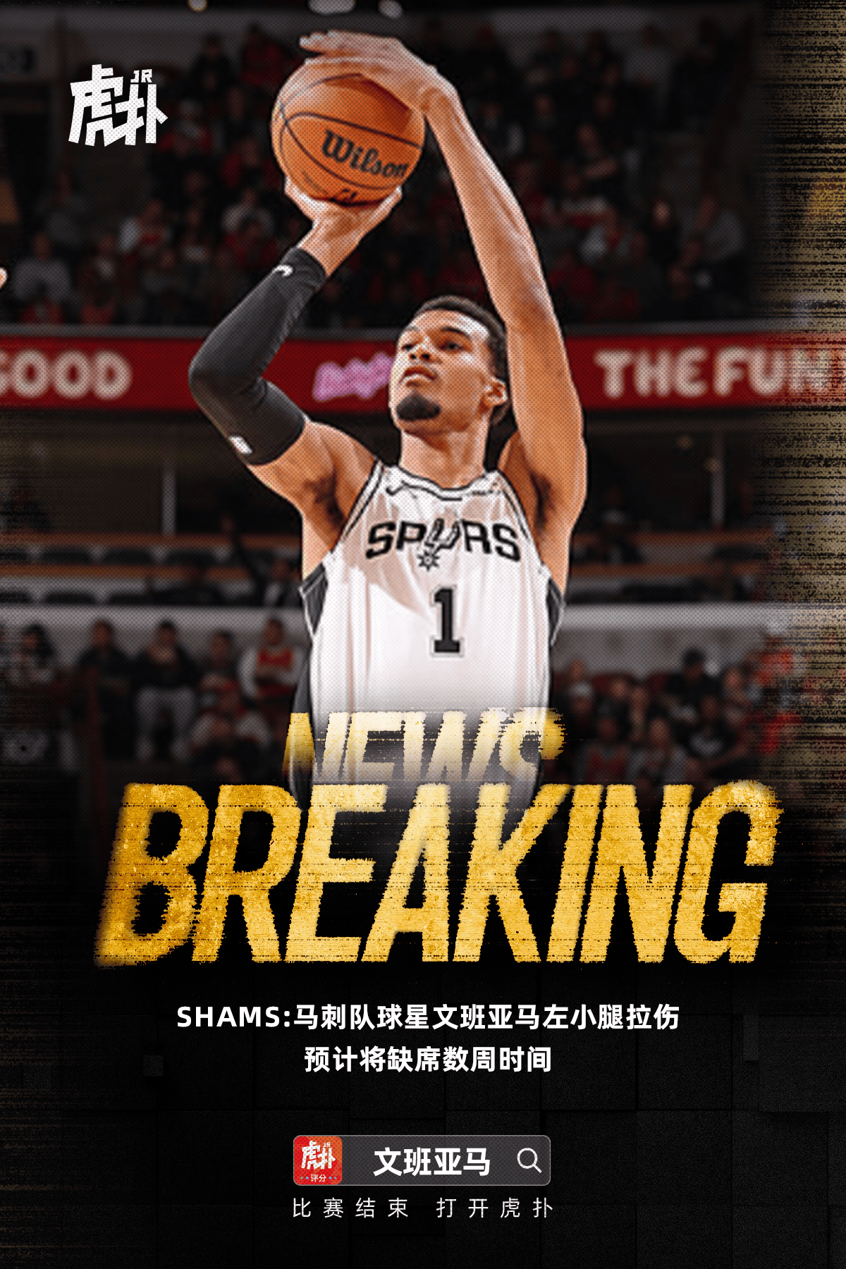 虎撲11月18日訊 根據(jù)美國(guó)記者Shams的消息,圣安東尼奧馬刺隊(duì)球星維克托-文班亞馬左小腿拉傷,亞馬預(yù)計(jì)將缺席數(shù)周時(shí)間。腿受