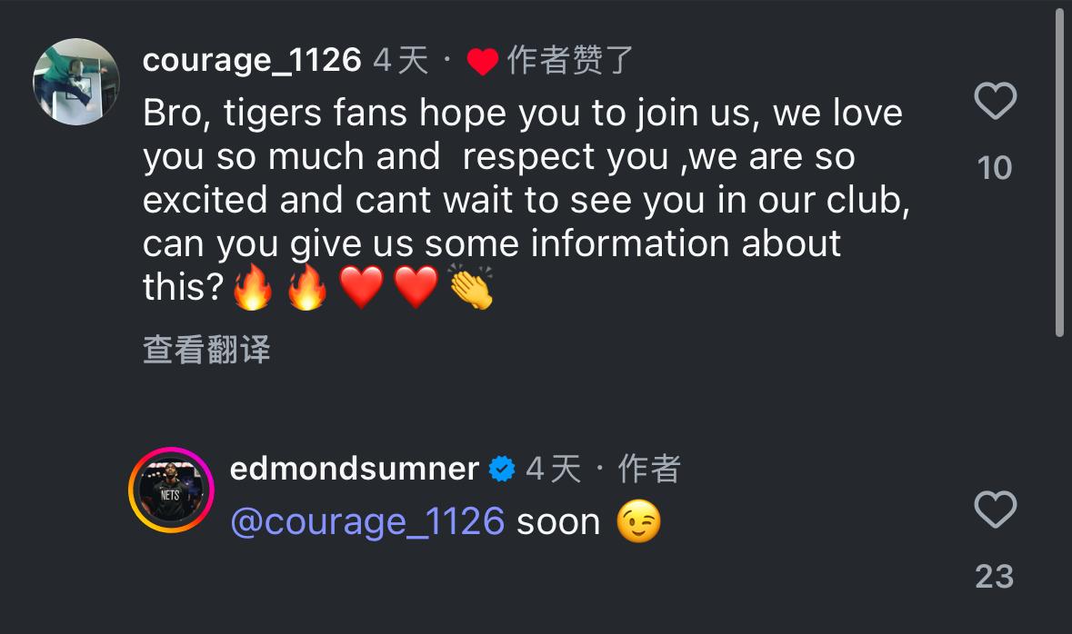 隨后,有廣東網(wǎng)友評論:兄弟,廣東隊的球迷非常希望你加入我們,我們迫不及待想要在廣東見到你,你能告訴我們一些具體細(xì)節(jié)嗎?