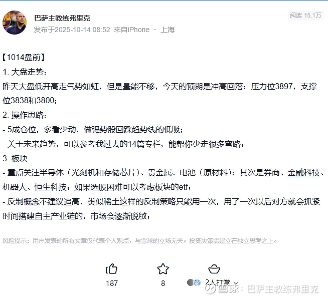 昨天指數(shù)那個(gè)超強(qiáng)的低開高走以后,很多人來(lái)質(zhì)疑我看錯(cuò)了,今天走成這樣以后這些聲音全都消失了;但對(duì)錯(cuò)以及面子真的不重要,重要是有一群一直支持我的人,我希望能幫你們多賺錢,少虧錢。