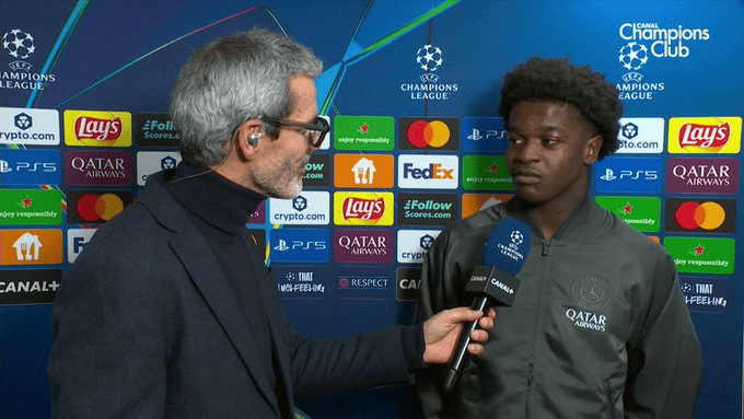 “說實話,我并不感到意外(首發(fā)),但我一直很期待首發(fā)。這表明教練看到了我在訓練中的努力,所以我非常高興能夠首發(fā)。在場上,我只是努力回報教練給予我的信任?!边@位年輕的巴黎青訓說道,這是他首次在歐冠聯(lián)賽中首發(fā)。