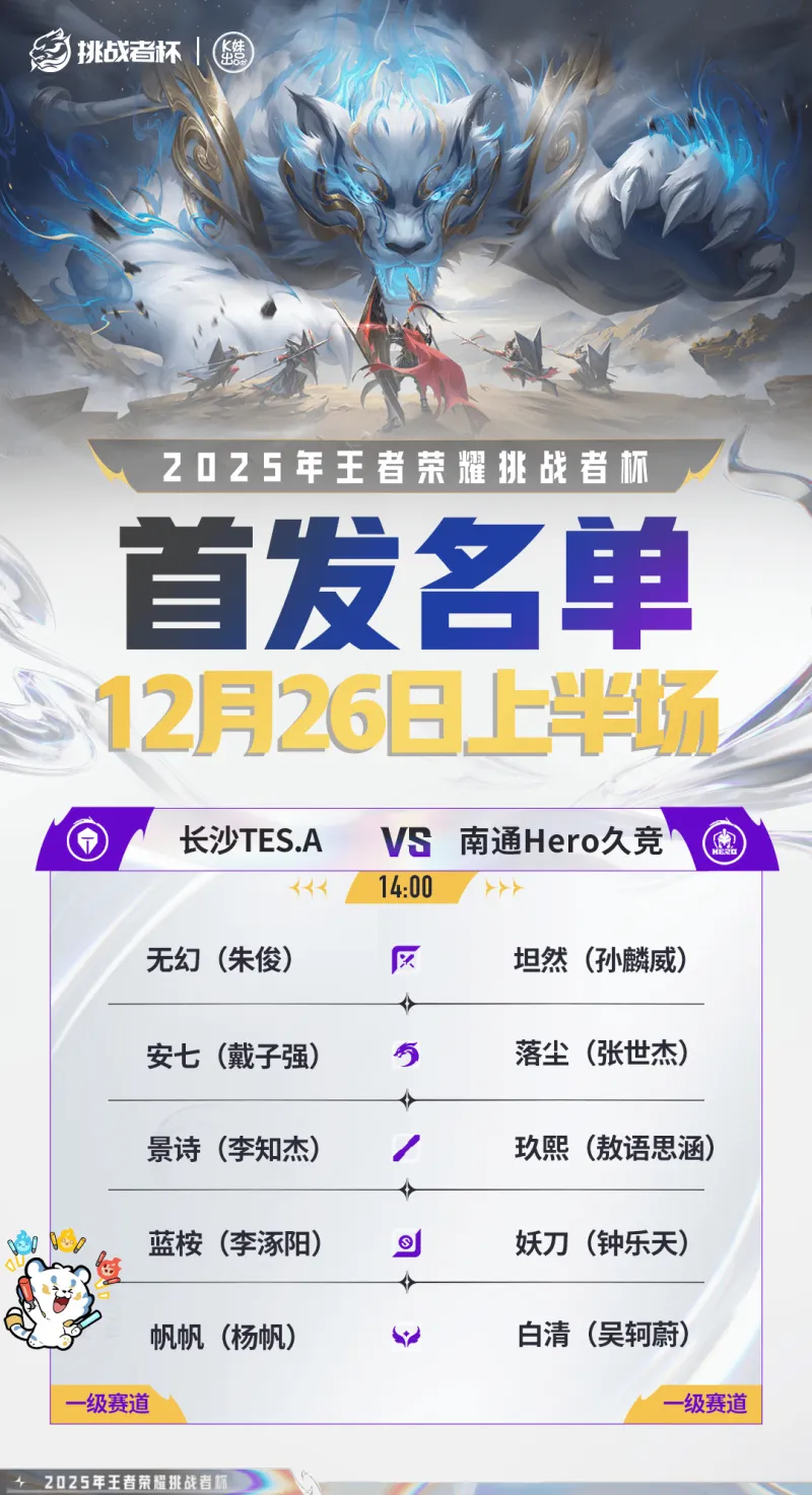2025王者榮耀挑戰(zhàn)者杯雙敗淘汰賽D5【首發(fā)名單】送達(dá) !板今步