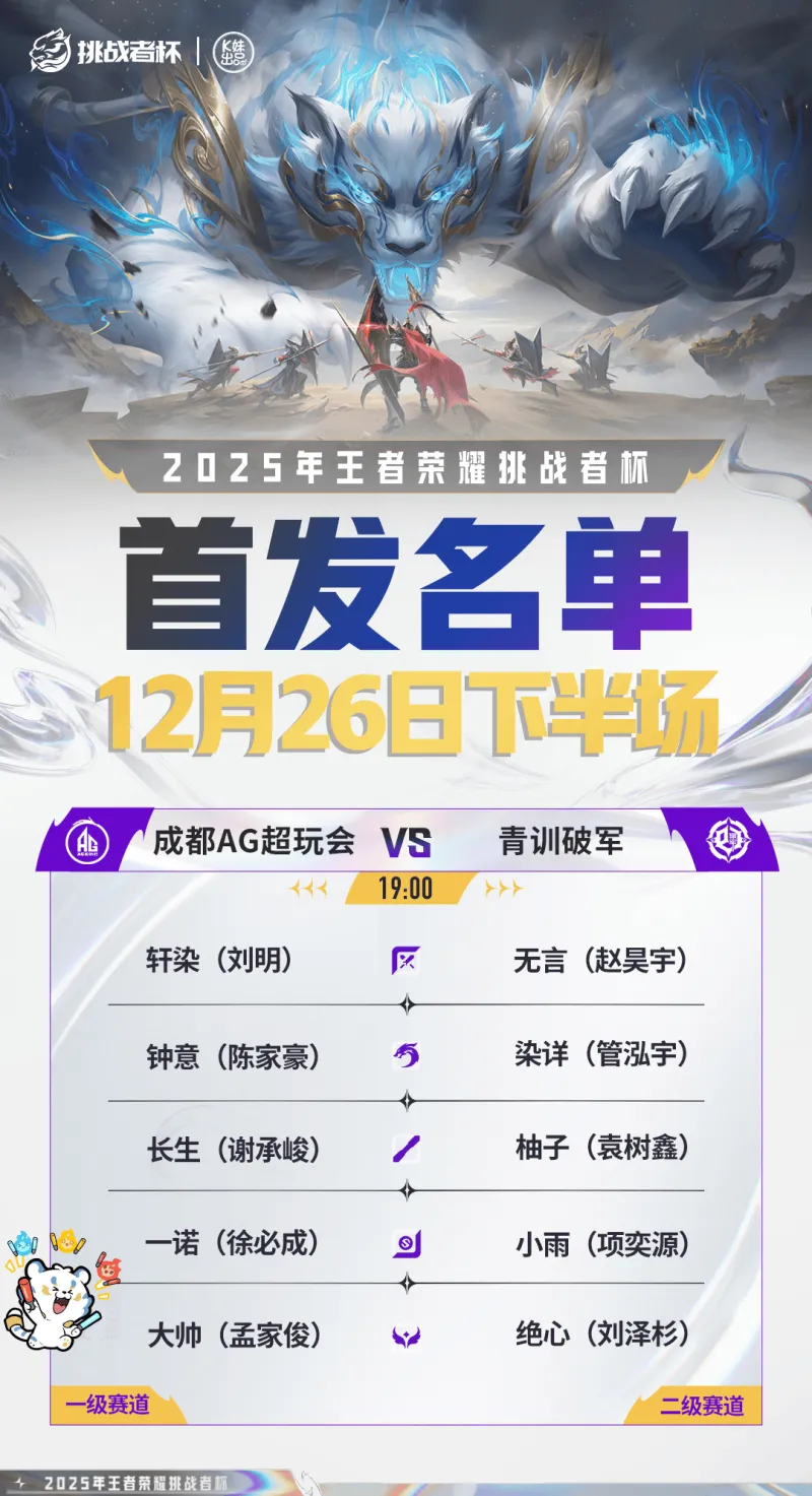 2025王者榮耀挑戰(zhàn)者杯雙敗淘汰賽D5【首發(fā)名單】送達(dá) !發(fā)青