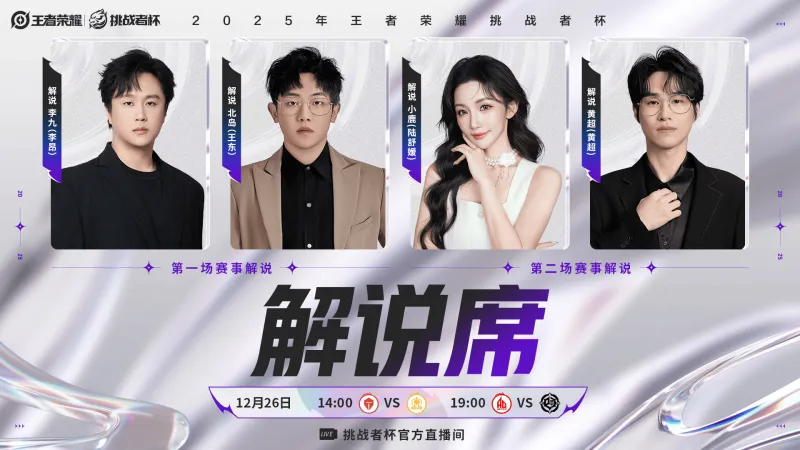 解說(shuō)席:解說(shuō)李九 (李昂)北島bbb (王東)解說(shuō)小鹿 (陸舒媛)GK黃色超人oye (黃超)