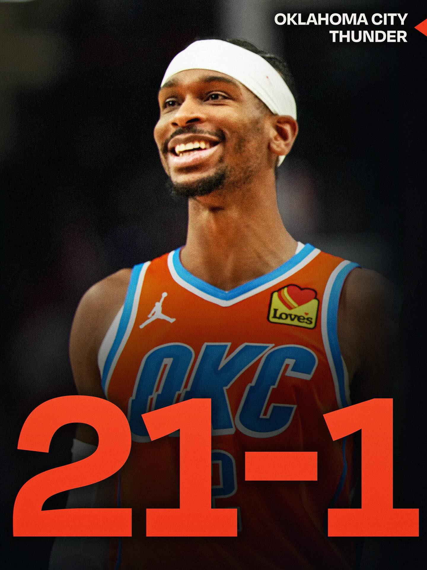 NBA官方寫道:“謝伊-吉爾杰斯-亞歷山大和雷霆延續(xù)歷史性開局,他們在客場擊敗勇士隊(duì)取得13連勝,賽季戰(zhàn)績提升至21勝1負(fù)!”