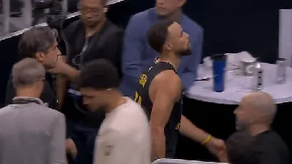 第四節(jié)比賽,前返庫(kù)里腿部受傷提前返回更衣室,回更勇士最后時(shí)刻落后7分。衣室勇士