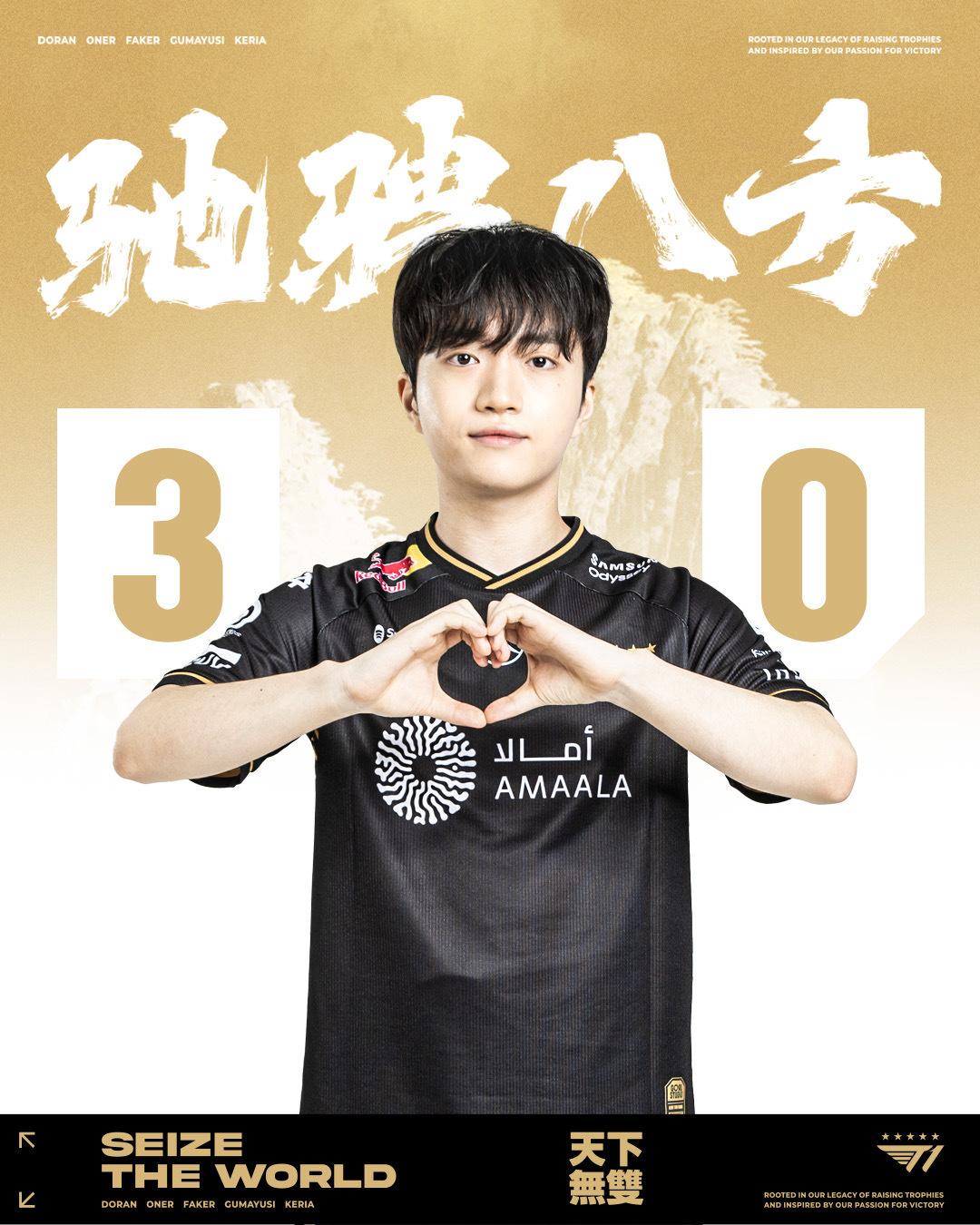 虎撲11月02日訊 T1官媒發(fā)布半決賽對(duì)陣TES獲勝海報(bào),并配文: