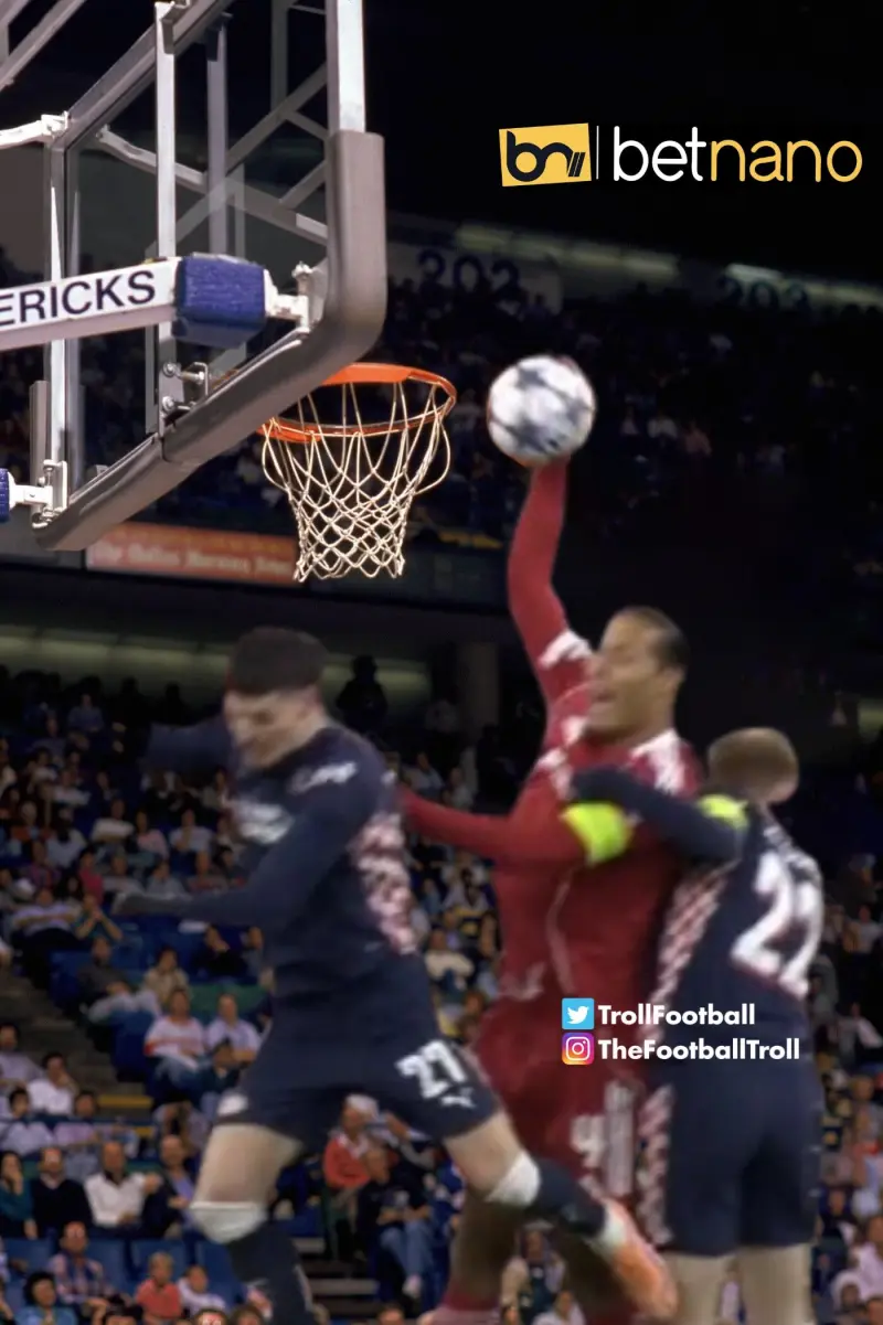 與埃因霍溫的比賽,在一次角球防守中,和范利物浦隊(duì)長范戴科空中攔截皮球離譜送點(diǎn)。離譜籃這個(gè)瞬間被國外博主P成了扣籃,送點(diǎn)瞬間一點(diǎn)也不違和。外博