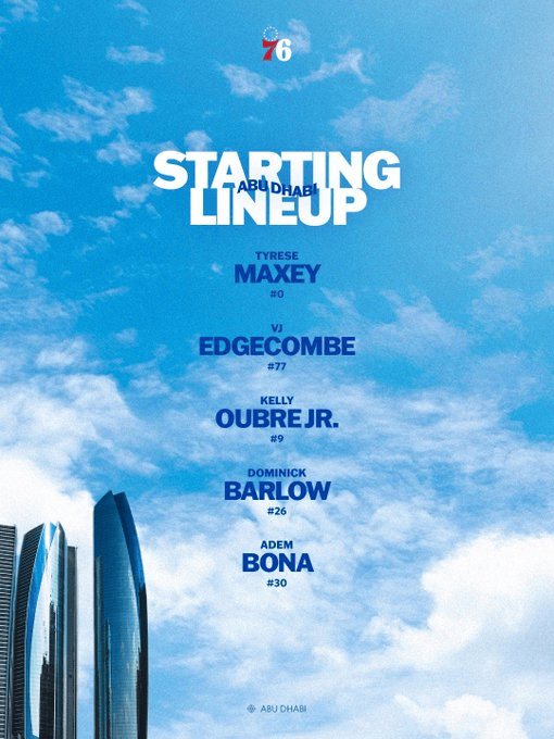 虎撲10月02日訊 76人將在今天的比賽中對(duì)陣尼克斯,賽前76人公布了首發(fā)陣容。西烏