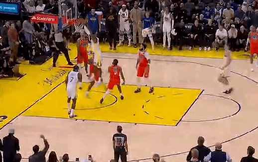第三節(jié)比賽,加搶庫(kù)明加搶到前板強(qiáng)起雙手暴扣,到前到分打停勇士追到4分打停雷霆。板強(qiáng)