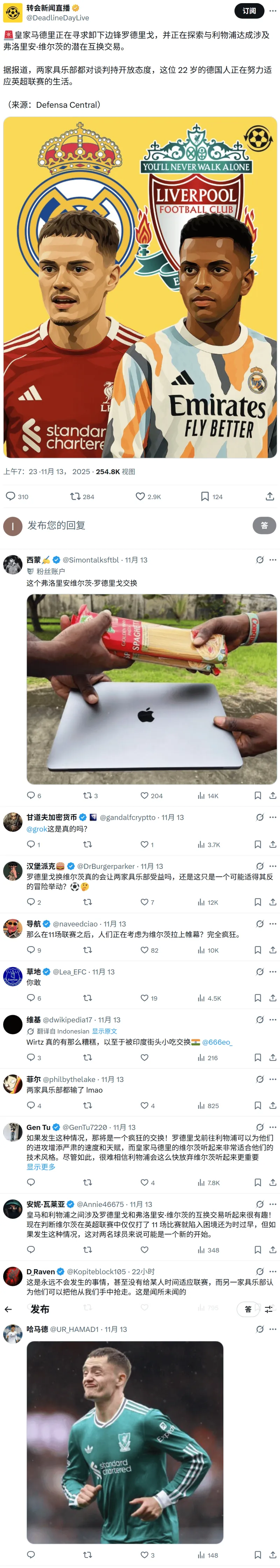 不靠譜傳聞:皇馬考慮交換羅德里格和維爾茨由levinso1 發(fā)表在皇馬專區(qū) https://bbs.hupu.com/realmadrid