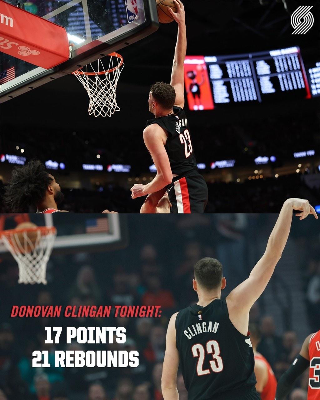 本場(chǎng)比賽,克林開(kāi)拓者球員多諾萬(wàn)-克林根全場(chǎng)13中7砍下17分21籃板4助攻1搶斷2蓋帽,根?;@板數(shù)創(chuàng)造生涯新高。晚砍