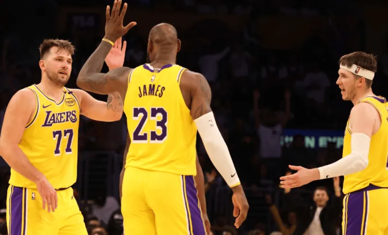 全場(chǎng)比賽,湖人球員盧卡-東契奇、勒布朗-詹姆斯和奧斯汀-里夫斯三人合計(jì)砍下99分24籃板22助攻。