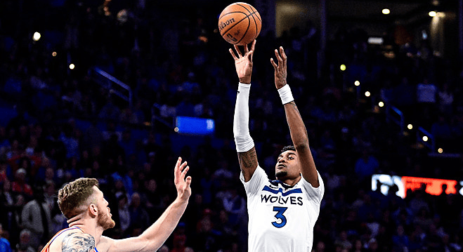 森林狼球員杰登-麥克丹尼爾斯得到10分6籃板3助攻。