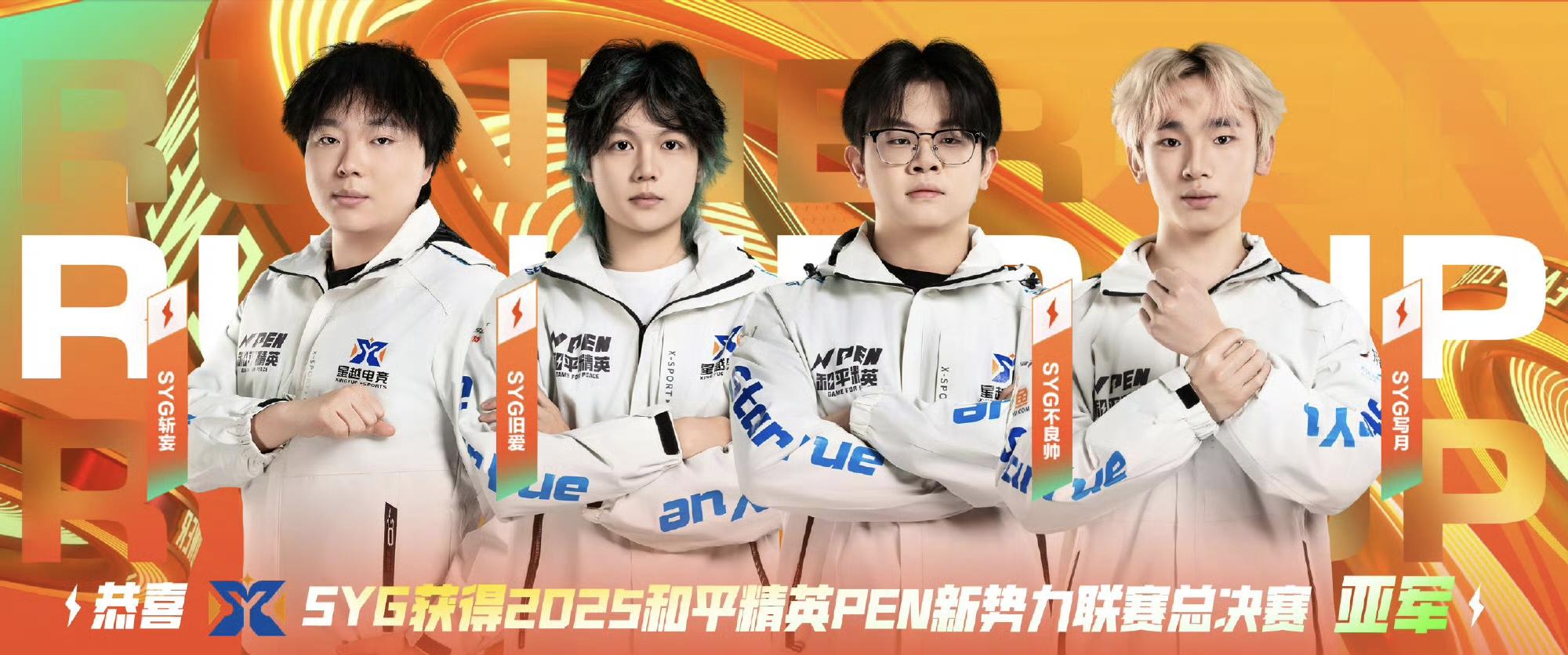 [流言板]恭喜SYG戰(zhàn)隊獲得2025和平精英PEN新勢力聯(lián)賽總決賽亞軍!
