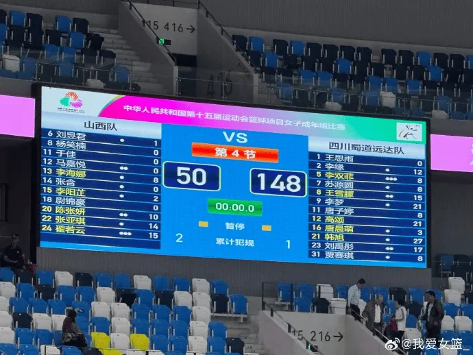 山西隊50-148四川隊,四川隊6人得分上雙,韓旭27分8籃板,高頌21分,李夢21分6助攻,劉禹彤17分,王雪朦15分,李緣12分5助攻。山西隊翟若云15分,張亞琪14分,陳張妍10分。