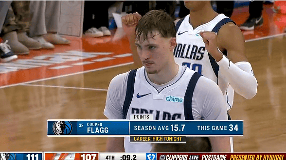 第四節(jié)比賽中,全中弗拉格關(guān)鍵時刻6罰全中砍下35分,行俠獨行俠剩9秒領(lǐng)先快船5分。剩秒
