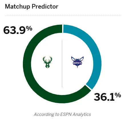 賽前,日雄美媒ESPN預(yù)測本場比賽,蜂比雄鹿勝率為63.9%占據(jù)上風(fēng),賽雄上風(fēng)黃蜂勝率為36.1%。占據(jù)? ?