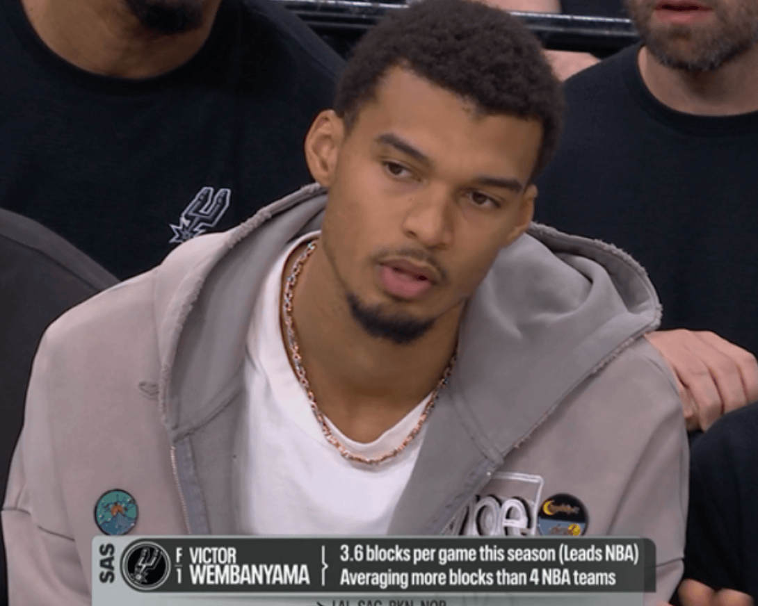 本場比賽,賽季馬刺球員維克托-文班亞馬因傷缺陣。于湖