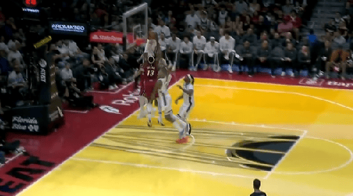 比賽的攻守掛框第一節(jié),希羅攻守轉(zhuǎn)換控制節(jié)奏,轉(zhuǎn)換助攻助攻阿德巴約空接掛框暴扣。控制空接