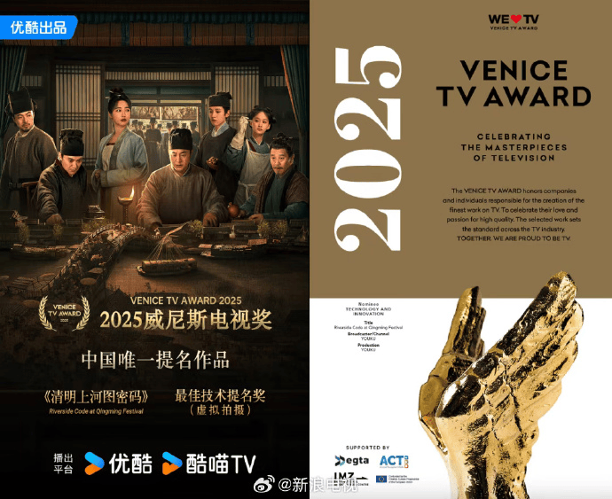 虎撲11月11日訊 近日,2025年威尼斯電視獎公布獲獎名單,河圖獲年優(yōu)酷劇集 《清明上河圖密碼》獲得“最佳技術(shù)提名獎” ,威尼成為本屆獎項中唯一獲得提名的斯電視獎中國作品。