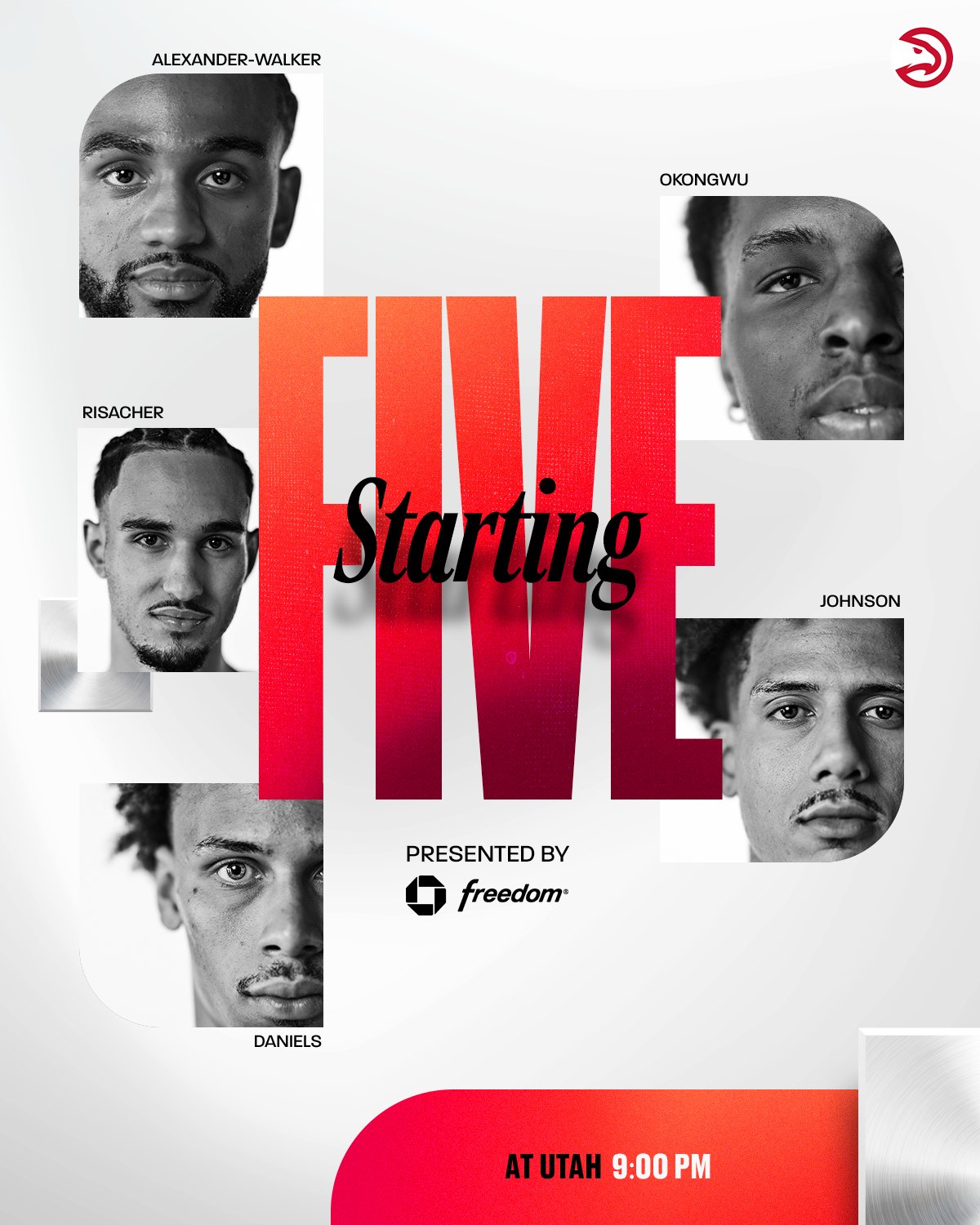 [流言板]老鷹首發(fā):約翰遜、里薩謝、沃克、奧孔古、丹尼爾斯