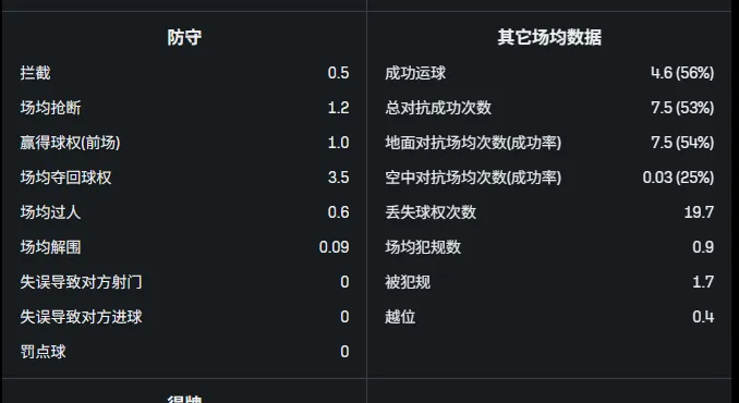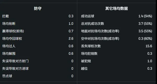 常年出勤30場(chǎng)10黃1紅的185矮個(gè)中衛(wèi),上搶成功率62.5,場(chǎng)均失誤0.26?!皯?yīng)該拿阿勞霍加錢換羅梅羅”