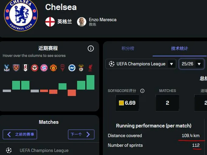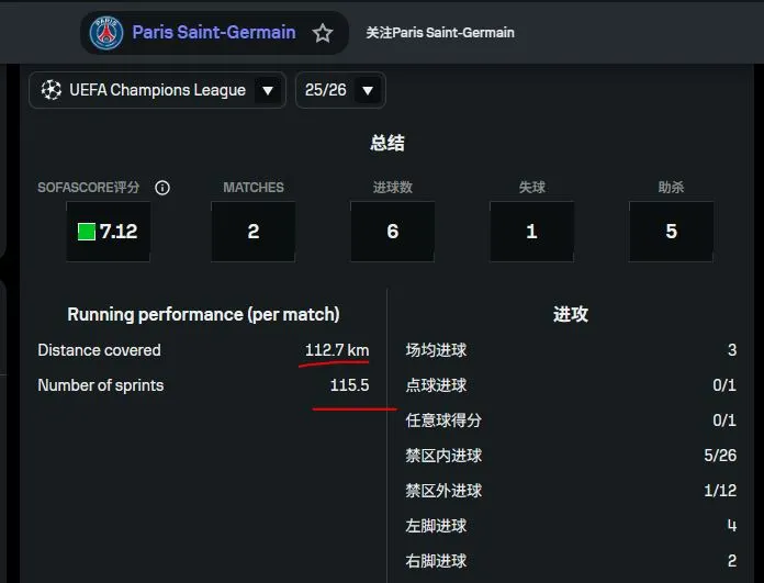巴黎112km 115沖刺次數(shù) 以開(kāi)球造界外球前壓著稱的巴黎,場(chǎng)均少近20次沖刺