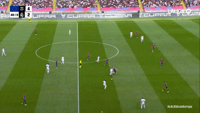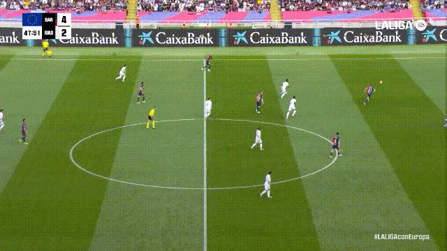 47分鐘德容給庫(kù)巴西刀山球庫(kù)巴西邊線傳給亞馬爾 亞馬爾救回給奧爾莫