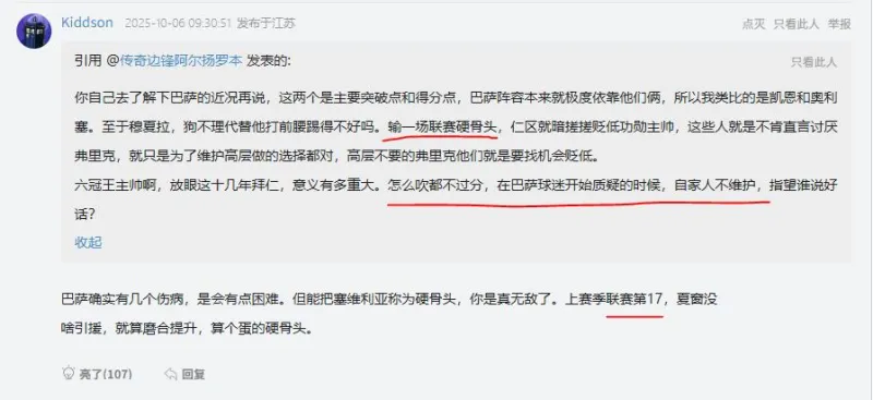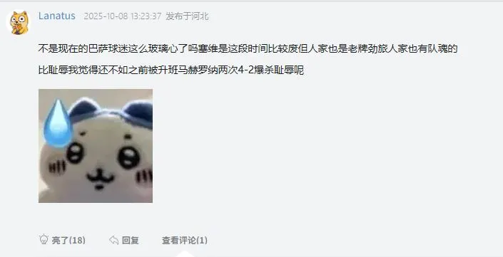 至于惜敗巴黎,惜敗塞維利亞前后來(lái)發(fā)癲的人,我覺(jué)得在仁區(qū)也是相當(dāng)不被歡迎的魔怔人。