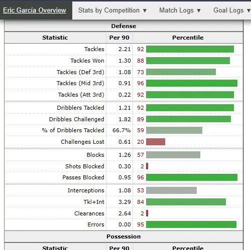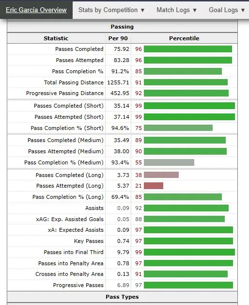 埃里克加西亞因?yàn)榭痛吅笮l(wèi)存在長(zhǎng)傳、進(jìn)攻上的數(shù)據(jù)誤差,僅供參考。