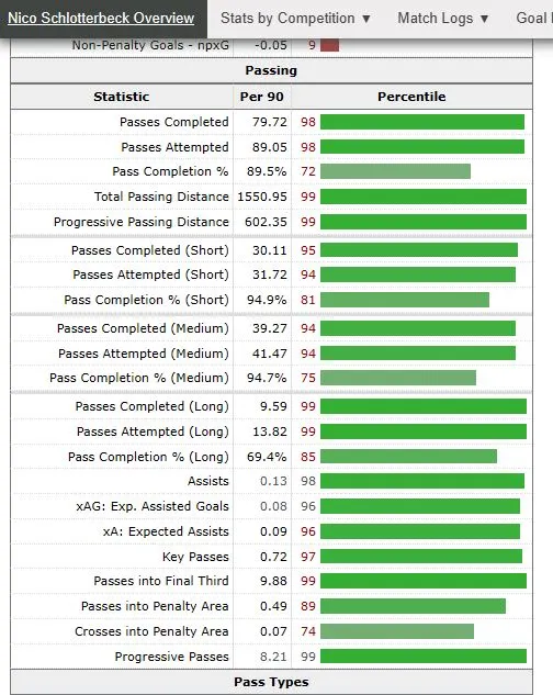 可以得出庫(kù)巴西與范戴克、施洛特貝克三人處于最好的出球一檔,而“出球很差”的阿勞霍在其中處于次一檔,跟薩利巴類似。(藤森的長(zhǎng)傳太少,姑且算在這一檔)
