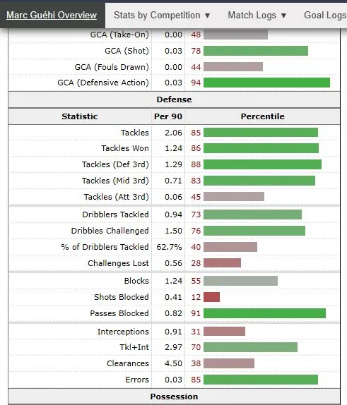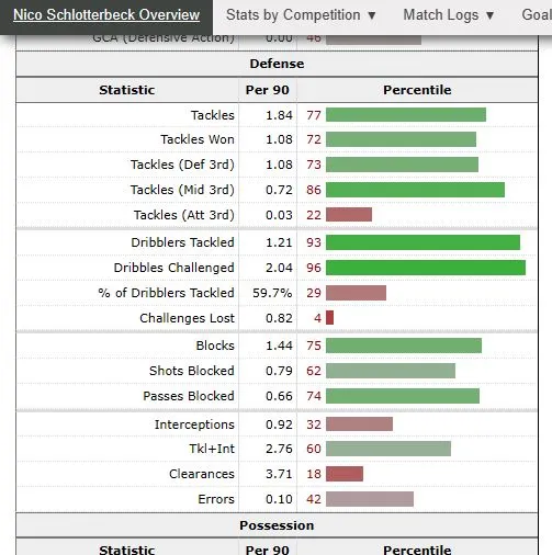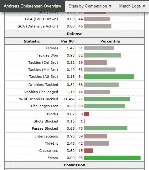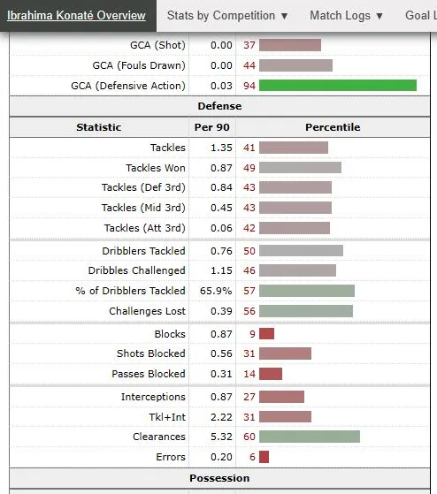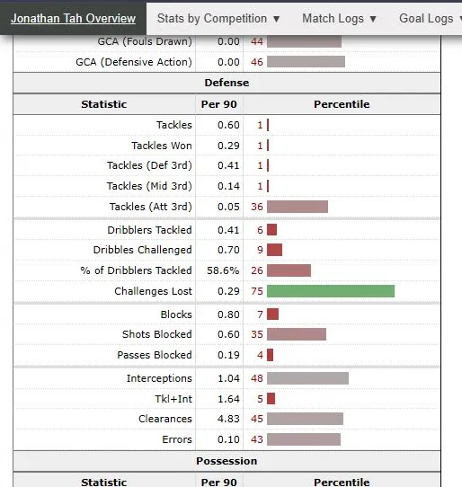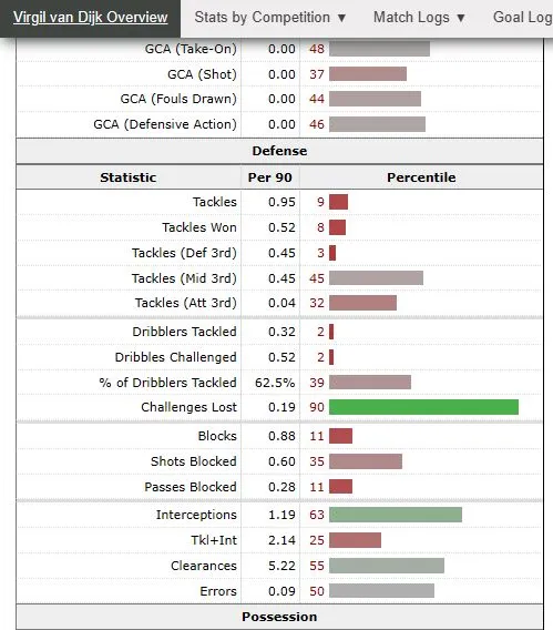 世一衛(wèi)范戴克,場(chǎng)均0.19上搶失敗領(lǐng)先90%,他幾乎不被過(guò),當(dāng)然,你能看出來(lái)他幾乎也不上搶。同時(shí),他0.09排在中位數(shù)的場(chǎng)均失誤意味著他在不對(duì)抗的情況下失誤仍然不少。