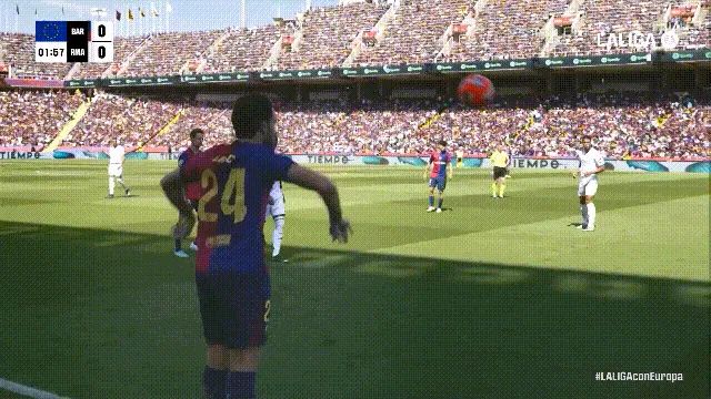 22分鐘 退防回合 佩德里挑球搶斷 德容邊線背著手回跑