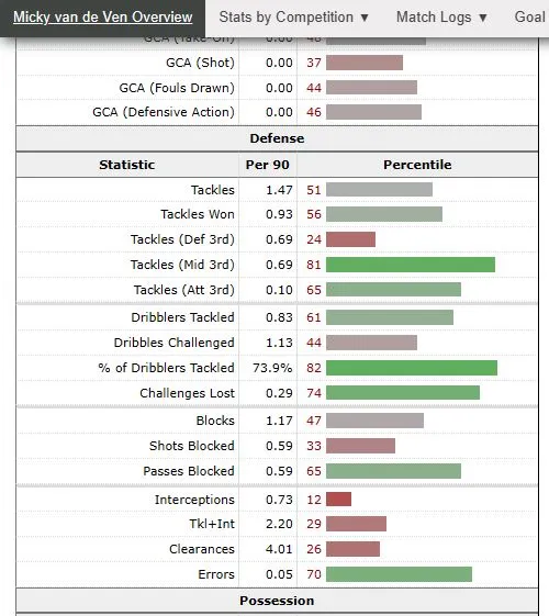 注意埃里克加西亞、藤森、阿勞霍、庫(kù)巴西66%、77%、84%、92%超越同位置的前場(chǎng)搶斷數(shù)據(jù),這是一組異常數(shù)據(jù),你可以從后面在澳波手下踢了一年球的范德文與羅梅羅那里看見(jiàn)相似處。
